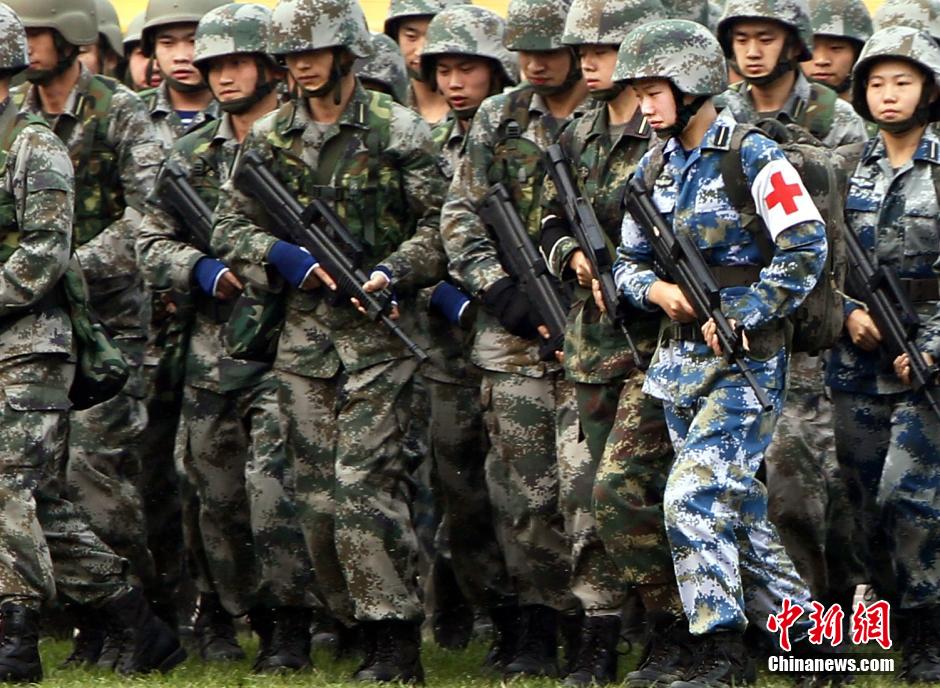 Norman Bethune Non-Commissioned Officer Medical School conducts adaptive medical exercise in Shijiazhuang, north China's Hebei province on Oct. 10, 2014. (CNS/Song Jihe)