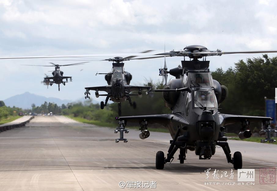 An army aviation brigade of Guangzhou Military Region conducts a drill for the Z-10 attack helicopter formation on Oct. 13, 2014. (Photo source: Microblog of a PLA Daily reporter)