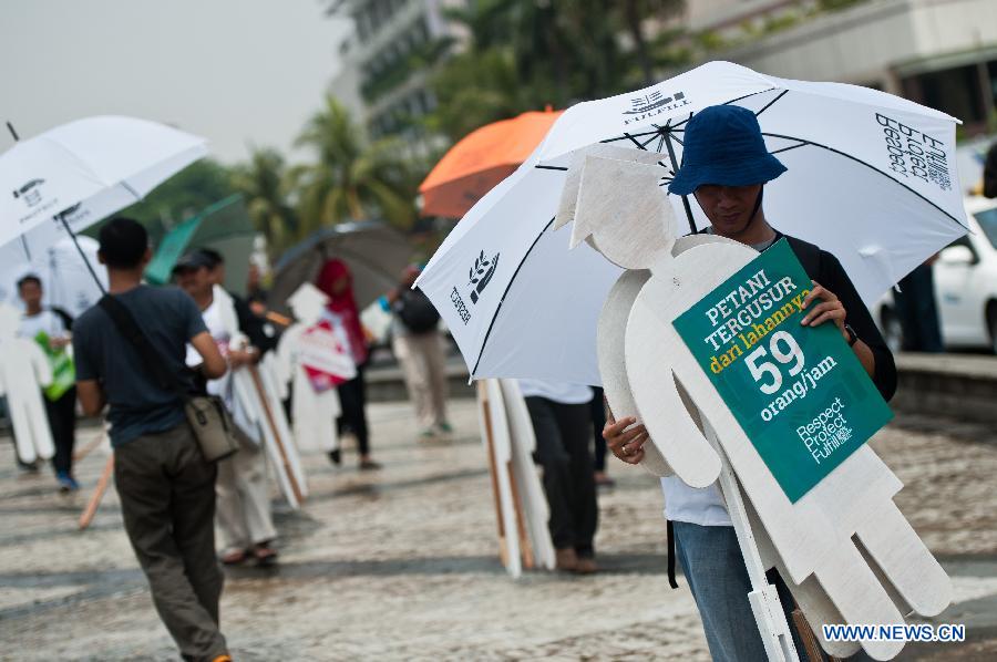 People attend a rally marking the World Food Day in Jakarta, Indonesia, Oct. 16, 2014. (Xinhua/Veri Sanovri)