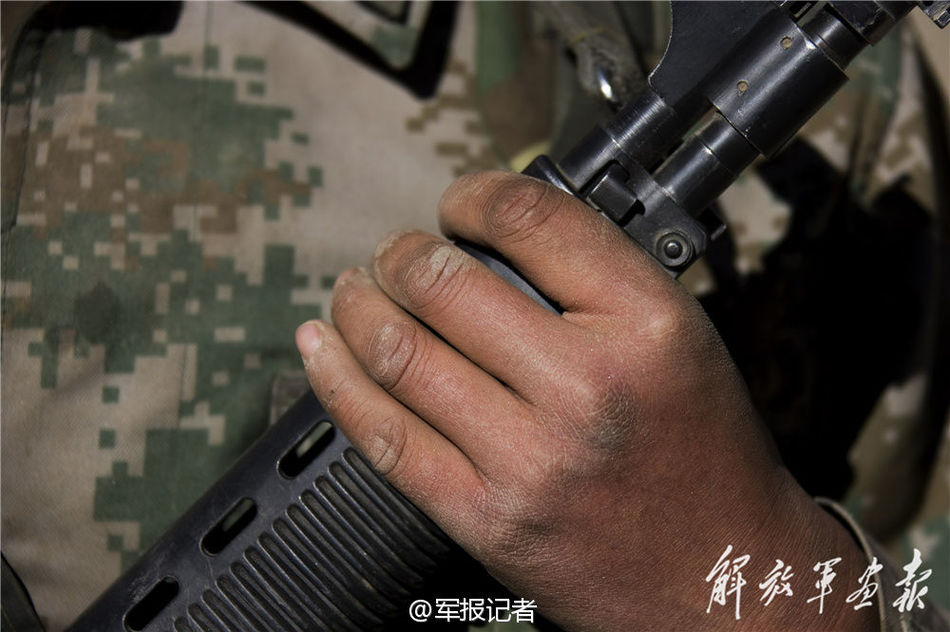 Gobi desert in Xinjiang, the remote west China, is regarded as no man's land. A group of young soldiers live, train, and challenge the limits of their lives in the tough environment, where they have to guard in biting cold at an altitude of over 5,000 meters. Their hands look much more “older” than they are supposed to be. (PLA PICTORIAL)