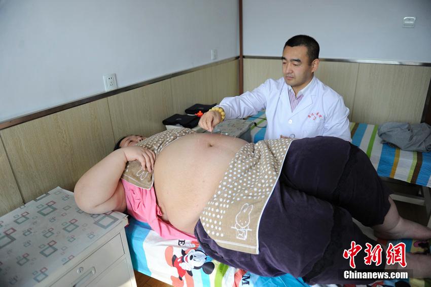 According to the doctor, she can start to do some aerobic exercise only after losing about 88 lbs (40 kilograms). If it all works out, Liu will weigh less than 220 lbs (100 kilograms) after 12 to 15 months. (Chinanews/Zhang Yao)