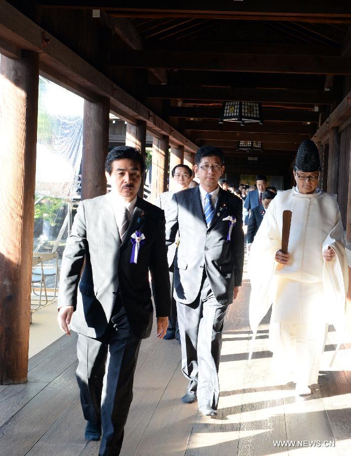 About 110 Japanese lawmakers from a nonpartisan group visited the Yasukuni Shrine on Friday morning, which honors convicted World War II Class-A war criminals along with war dead.