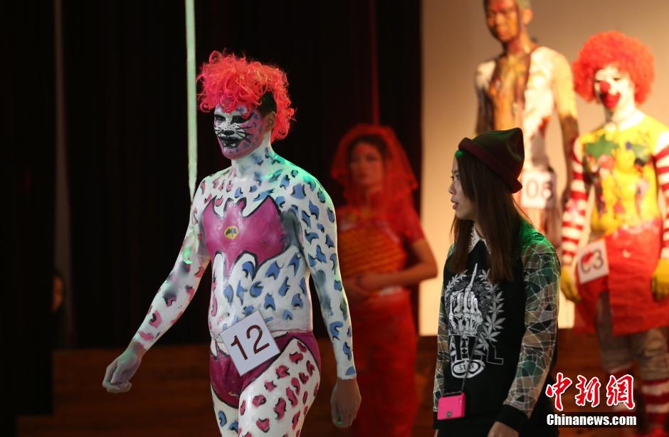 College students show body paintings in Nanjing. (CNS/Yang Bo)
