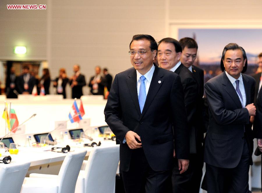 Chinese Premier Li Keqiang attends the closing ceremony of the tenth Asia-Europe Meeting (ASEM) in Milan, Italy, Oct. 17, 2014. (Xinhua/Rao Aimin)