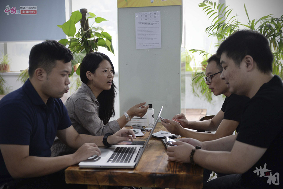 Lu has a meeting with her colleagues. (China.com.cn/Lai Xinlin)