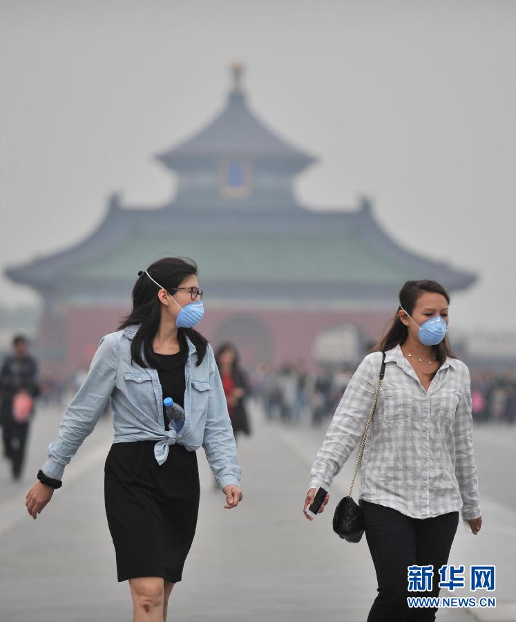 Visitors wearing masks walk near the Temple of Heaven in Beijing. (Photo/ Xinhua)