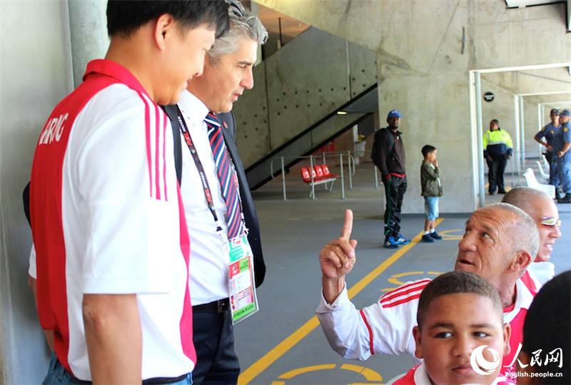 Fans of Ajax Cape town talk to the management of Huawei and the team.(Photo/People's Daily Online)