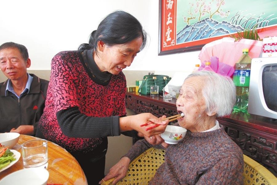 Bai feeds her mother dumplings. (Photo/Dahe.cn)