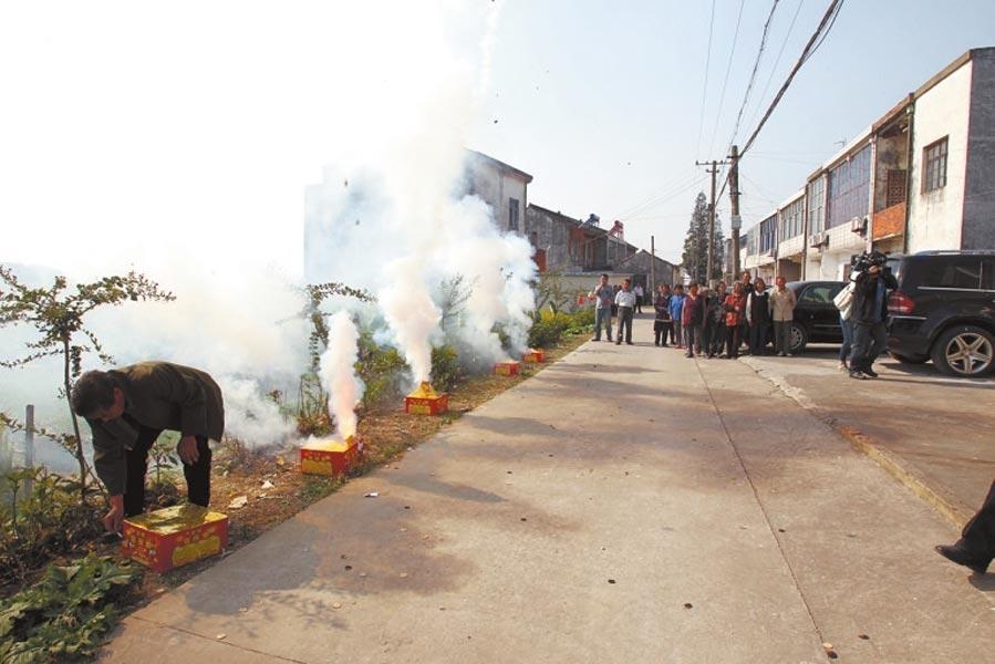 Bai's family lights fireworks to celebrate the reunion. (Photo/Dahe.cn)