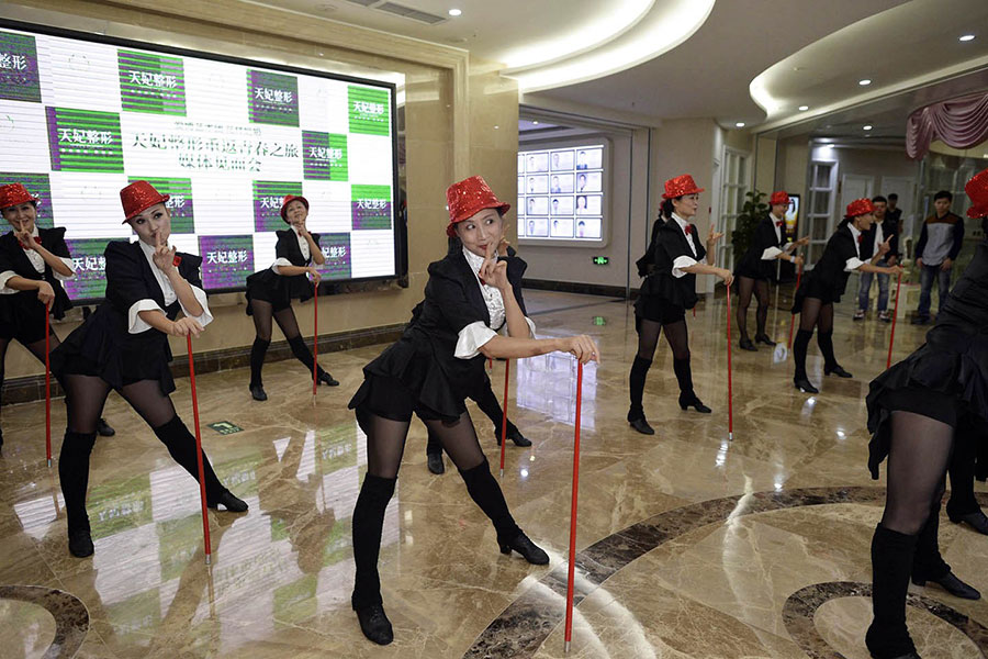 Several ladies dance Jazz in the cosmetic surgery hospital. (Photo/Youth.cn)