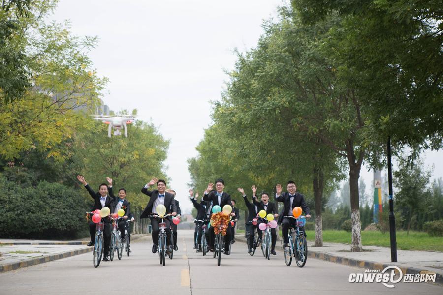 Lately 16 PhD candidates of Northwestern Polytechnic University had a group wedding together. This is the first time that doctoral students have had a group wedding in Shaanxi. All the grooms set off from the building of doctoral studies to pick up their brides by bikes.