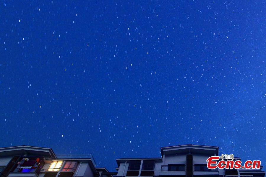 The Orionid meteor shower is visible in the sky of Southwest China’s Chongqing municipality on Tuesday night, October 21, 2014. There were as many as 25 meteors per hour at its height during the period between 22:00 and dawn, according to the Beijing Planetarium. [Photo: China News Service/ Zhao Junchao]