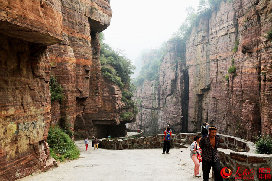 | Located in Xinxiang city, central China’s Henan province, the Guoliang cliff corridor is a road built along the cliff. The construction of this miraculous road lasted five years from 1972 to 1977 and it was all built by hand by villagers of Guoliang Village. It is now known as one of “the 10 steepest roads in the world”. (Photo source: people.cn) |
