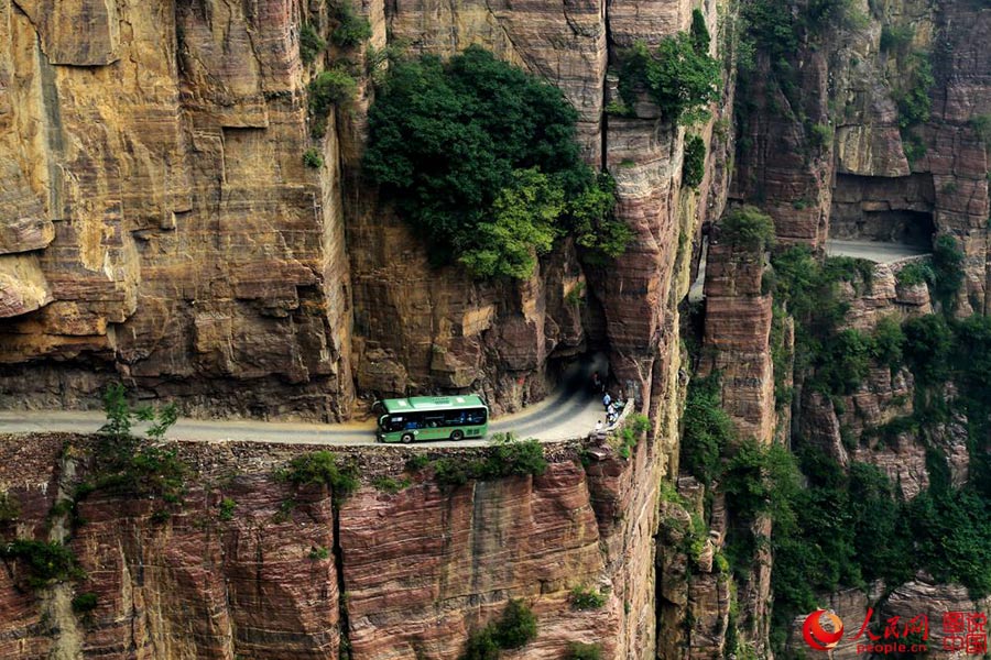 Located in Xinxiang city, central China’s Henan province, the Guoliang cliff corridor is a road built along the cliff. The construction of this miraculous road lasted five years from 1972 to 1977 and it was all built by hand by villagers of Guoliang Village. It is now known as one of “the 10 steepest roads in the world”. (Photo source: people.cn)