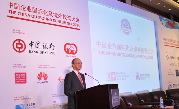 Lord Sassoon, Chairman of CBBC delivers a speech at China Outbound Conference 2014. (Photo provided by CBBC)