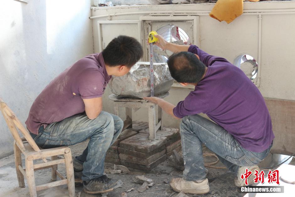 Chrysanthemum stone is formed in geological conformation movement. A gold medal winner in 1915 Panama World Expo, the chrysanthemum stone of Liuyang, central China’s Hunan Province enjoys great fame. As unique artwork of Liuyang, the chrysanthemum stone carving is famous for its sophisticated craftsmanship and high collection value. (Chinanews/Huang Shili)