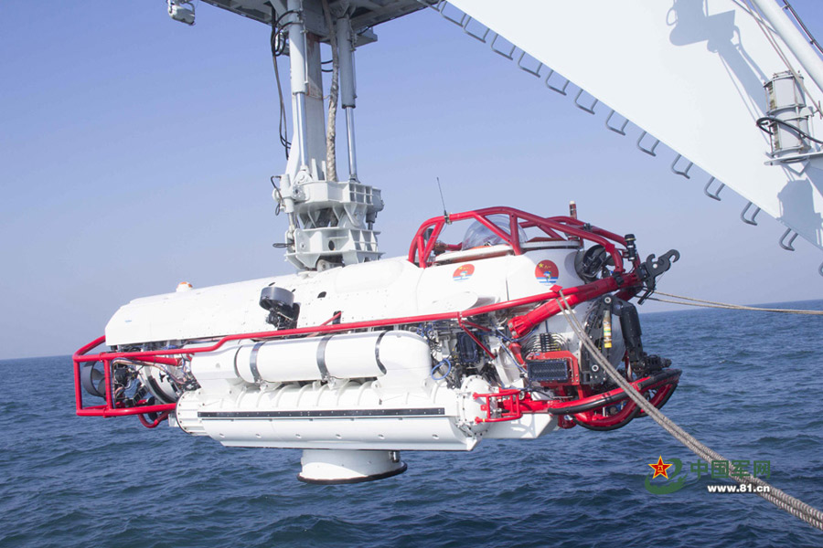 From October 21 to October 23, 2014, a rescue team of the North China Sea Fleet conducts a recue drill in bad weather conditions. A LR-7 type deep submergence rescue vessel successfully connected with a submarine 40 meters under the sea surface and transferred 8 submariners. (www. 81.cn/Wang Changxin and Meng Lingyu)