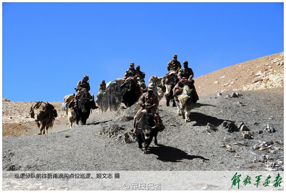 Soldiers patrol along a valley in Pamir Mountains. (PLA Pictorial/Ji Wenzhi)