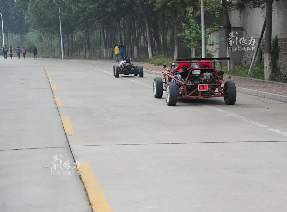 Sometimes Yu and Liu drive their racing cars on campus. (Iqilu/Zhang Wei)
