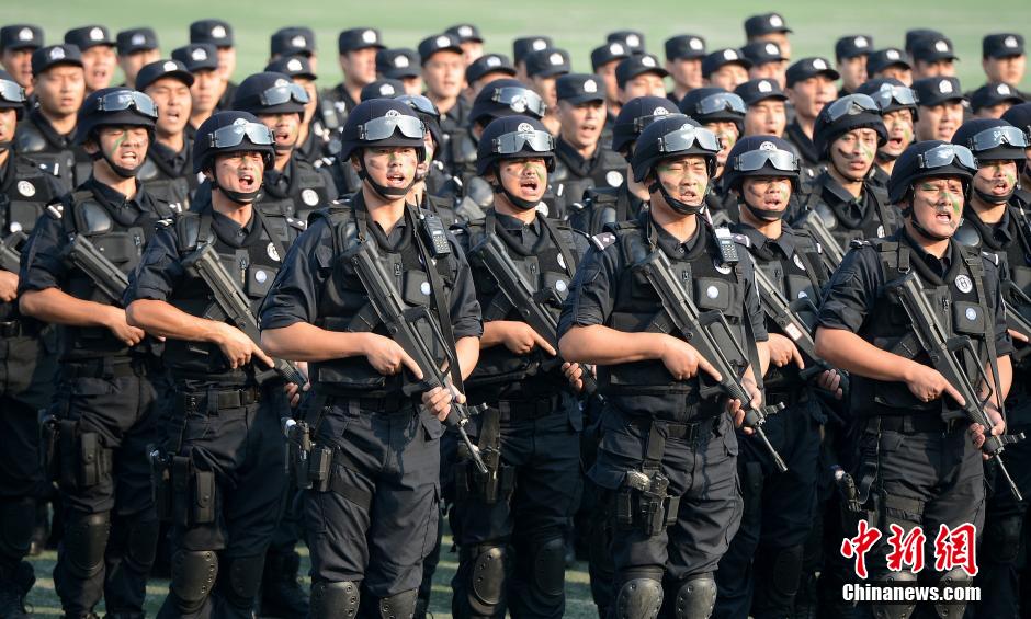 A comprehensive anti-terrorist drill is held in Hefei, central China’s Anhui province on Oct. 26, 2014. Over 600 emergency personnel and 77 emergency vehicles from eight emergency response forces, including special police, armed police, fire department, medical aid, etc., participated in the drill. (Chinanews/Zhang Yazi)