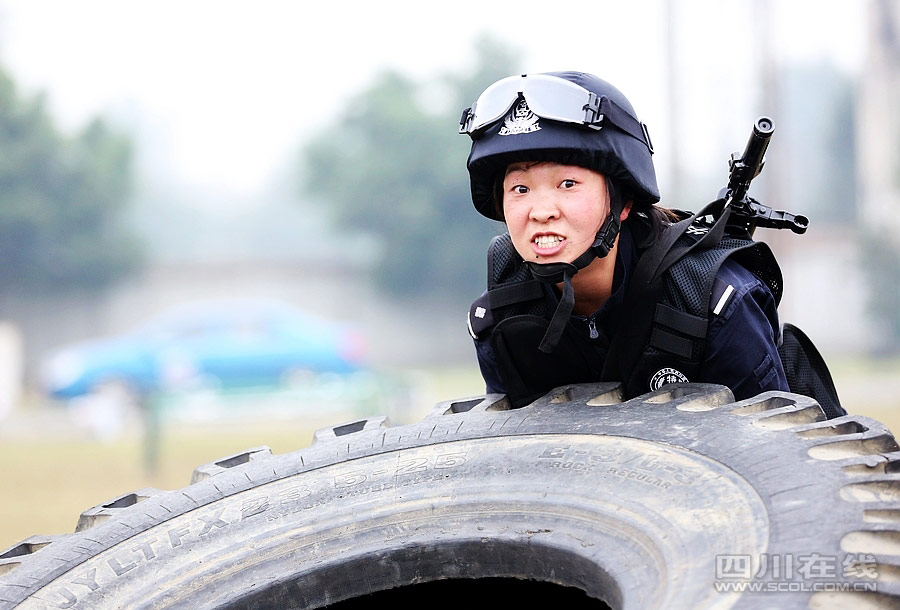 A female armed police officer receives training in Deyang. (scol.com.cn)