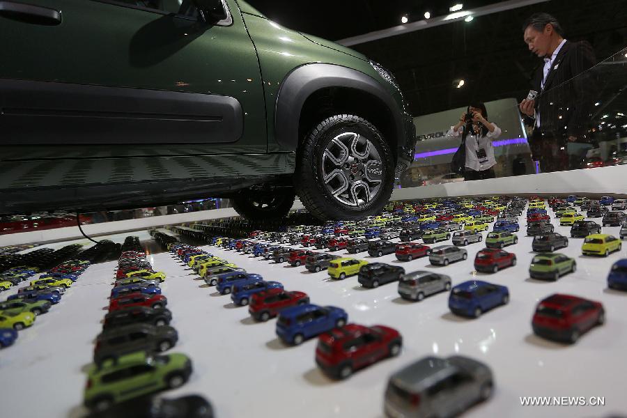 People visit the 28th Sao Paulo International Motor Show on its media day in Sao Paulo, Brazil, on Oct., 29, 2014. The exhibition, the most important of its kind in Latin America, will be held from Oct. 30 to Nov. 9, expecting more than 750,000 visitors, according to the organizers. (Xinhua/Rahel Patrasso)