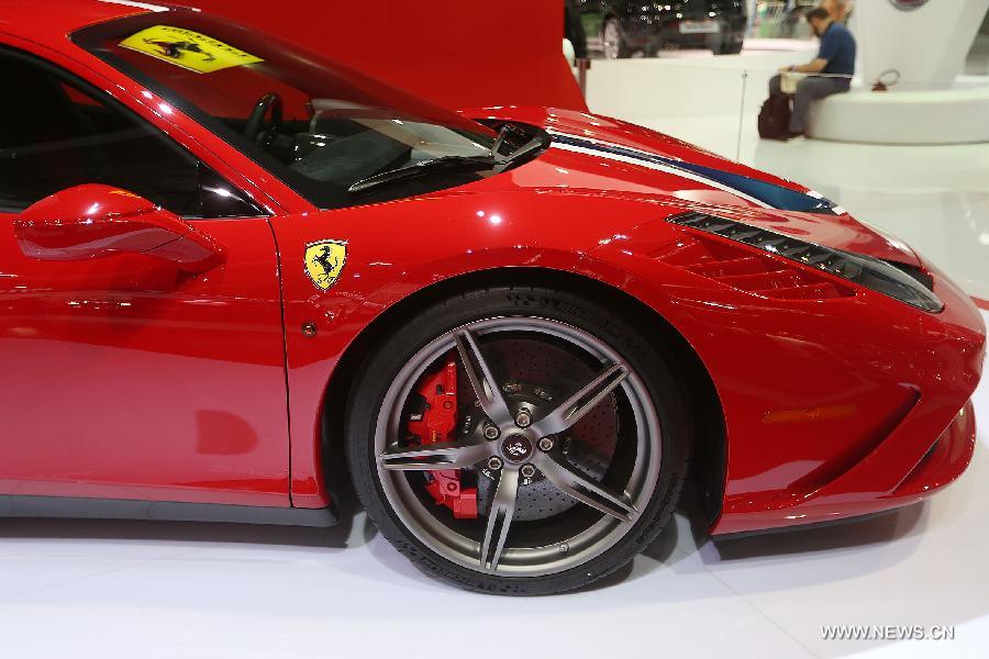 A Ferrari 58 Speciale is displayed on the media day of the 28th Sao Paulo International Motor Show in Sao Paulo, Brazil, on Oct., 29, 2014. The exhibition, the most important of its kind in Latin America, will be held from Oct. 30 to Nov. 9, expecting more than 750,000 visitors, according to the organizers. (Xinhua/Rahel Patrasso)