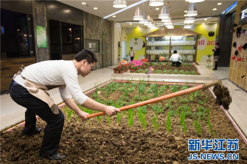 The unique "farm life"in Xinjiekou Shopping Mall, Nanjing City.(JS.NEWS.CN/Su Yang )