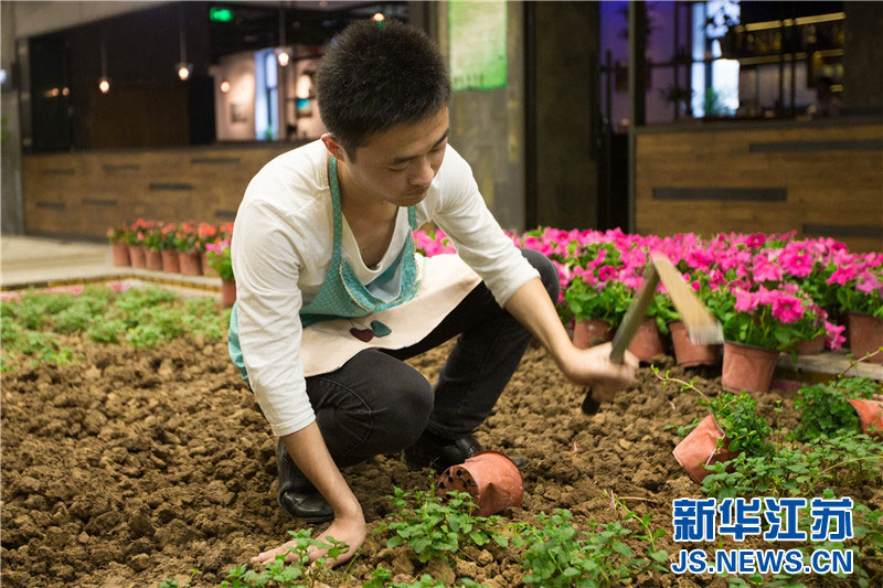 The unique "farm life"in Xinjiekou Shopping Mall, Nanjing City.(JS.NEWS.CN/Su Yang )