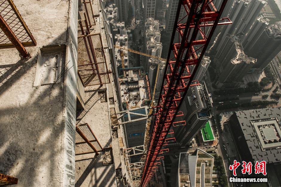 The construction of 530-meter Guangzhou Chow Tai Fook Financial Center, namely East Tower, completes on Oct.28, 2014. (CNS/Long Yuyang)