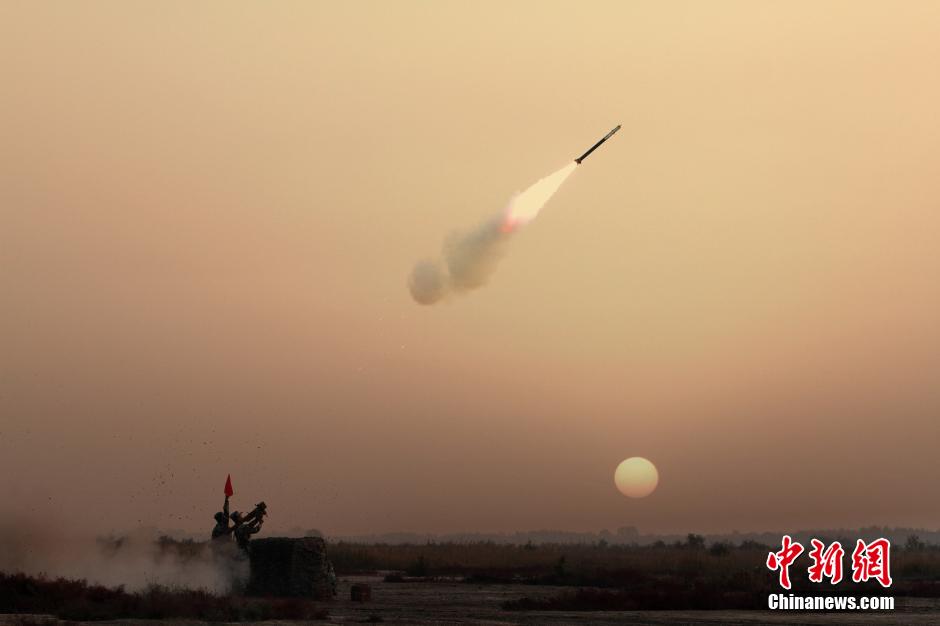A missile brigade of China’s air force conducts a live-fire exercise near the Bohai Sea. The brigade fired missiles and hit all targets. During the exercise, the brigade verified a series of combat tactics. (CNS/Li Ming)