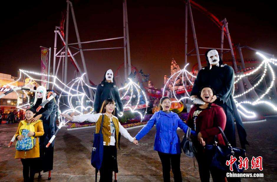 Visitors experience ghost atmosphere in Beijing Happy Valley. (CNS/Lu Xin)