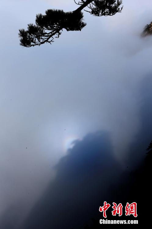 "Budha Halo" is seen after rainfalls at Mount Huangshan in east China's Anhui province, Nov. 1, 2014. (Source: Chinanews.com)