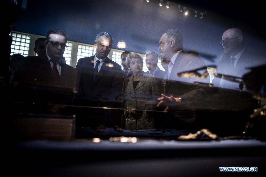 Irina Bokova (C), Director General of UNESCO, visits the Iraqi National Museum in the Iraqi capital of Baghdad on Nov. 2, 2014. Bokova on Sunday voiced support for the Iraqi government against "barbaric" destruction of the Iraqi cultural heritage, as the Islamic State (IS) militant group destroyed several ancient sites in the country. (Xinhua/Chen Xu)