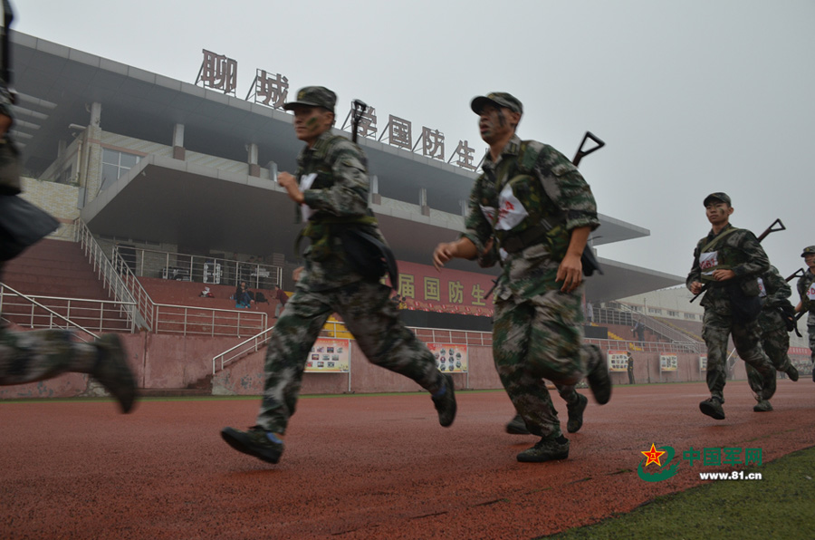 Recently, a military skills competition was held for national defense students in Liaocheng University, east China’s Shangdong Province. The participants are from China University of Petroleum and Liaocheng University. The three-day competition is both intensive and challenging. (www.81.cn)
