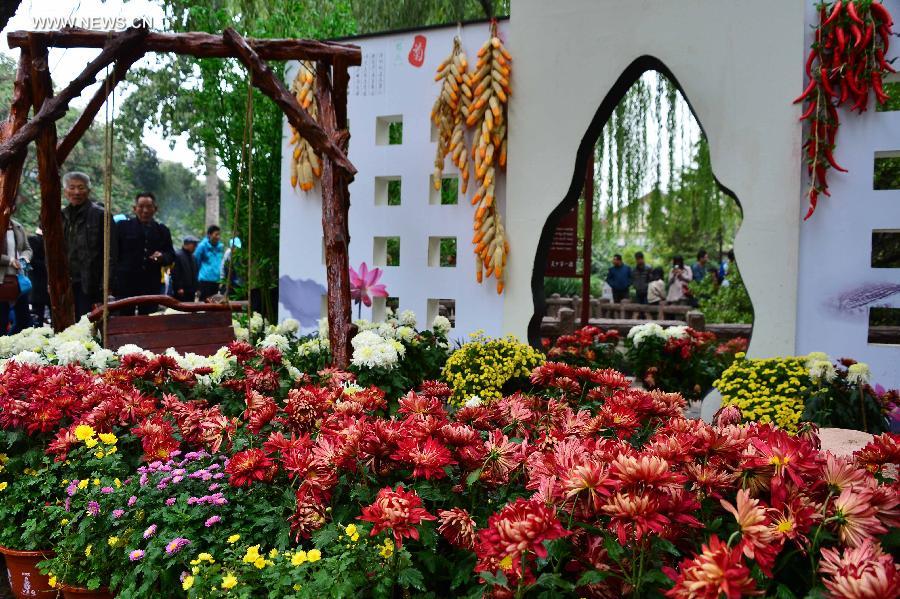 Photo taken on Nov. 5, 2014 shows colorful chrysanthemum flowers at Baotu Spring Park in Jinan, capital of east China's Shandong Province. An autumn chrysanthemum show kicked off at Baotu Spring Park in Jinan recently. A total of some 200 kinds of chrysanthemum attracted lots of visitors. (Xinhua/Guo Xulei)