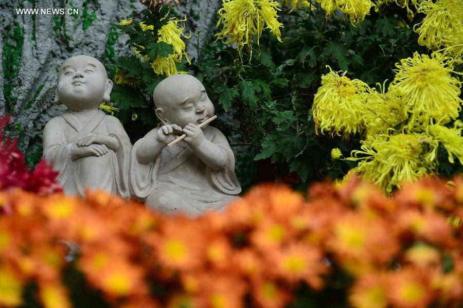 | Colorful chrysanthemum flowers bloom at Baotu Spring Park in Jinan, capital of east China's Shandong Province, Nov. 5, 2014. An autumn chrysanthemum show kicked off at Baotu Spring Park in Jinan recently. A total of some 200 kinds of chrysanthemum attracted lots of visitors. (Xinhua/Guo Xulei) |