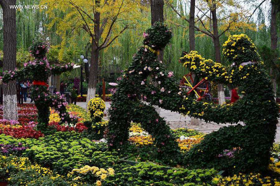 Photo taken on Nov. 5, 2014 shows colorful chrysanthemum flowers at Baotu Spring Park in Jinan, capital of east China's Shandong Province. An autumn chrysanthemum show kicked off at Baotu Spring Park in Jinan recently. A total of some 200 kinds of chrysanthemum attracted lots of visitors. (Xinhua/Guo Xulei)