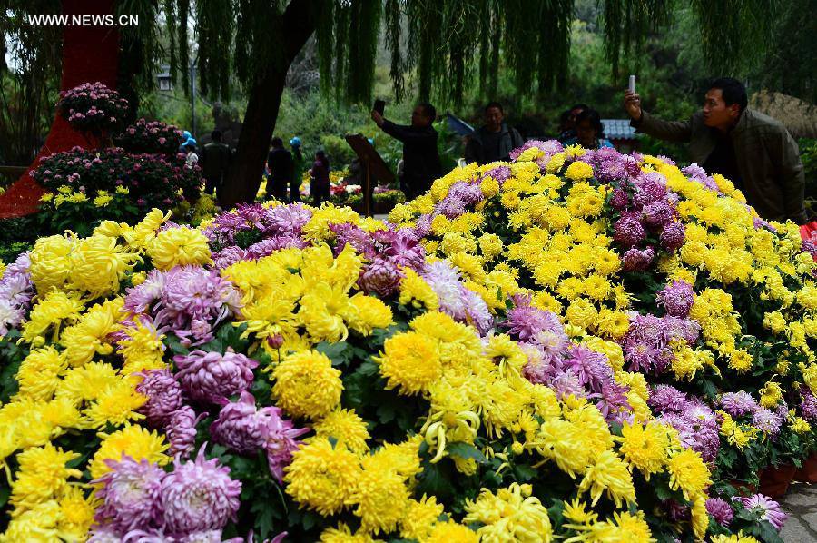Photo taken on Nov. 5, 2014 shows colorful chrysanthemum flowers at Baotu Spring Park in Jinan, capital of east China's Shandong Province. An autumn chrysanthemum show kicked off at Baotu Spring Park in Jinan recently. A total of some 200 kinds of chrysanthemum attracted lots of visitors. (Xinhua/Guo Xulei)