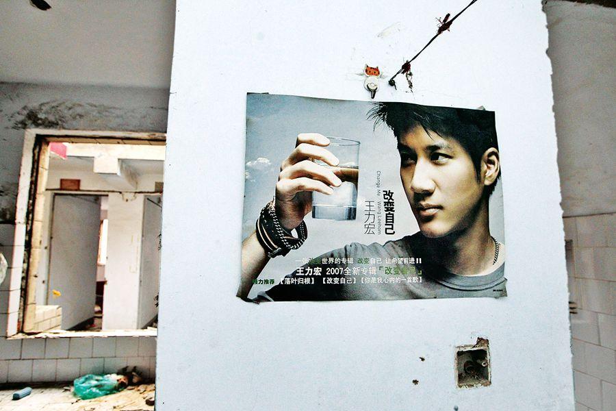 "Change myself", words on a poster of Leehom Wang, a Chinese popular singer, tell the hope of the people who used to dwell here. (Photo/dahe.cn)