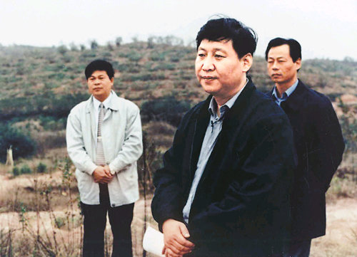 Photo taken in November 1999 shows Xi Jinping, then Deputy Party Secretary and acting Governor of Fujian, inspecting water and land preservation work at Changting County, Fujian province. (Photo source: Fujian Daily)