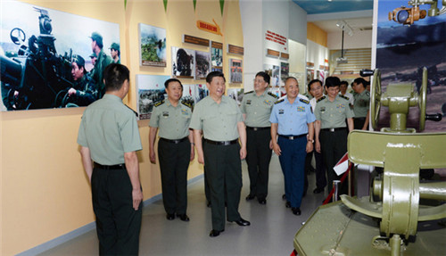 Chinese President Xi Jinping, also general secretary of the Communist Party of China (CPC) Central Committee and chairman of the Central Military Commission (CMC), pays a visit to Fujian Reserve Artillery Division on the eve of the PLA Army Day in 2014. (Photo source: Xinhua)