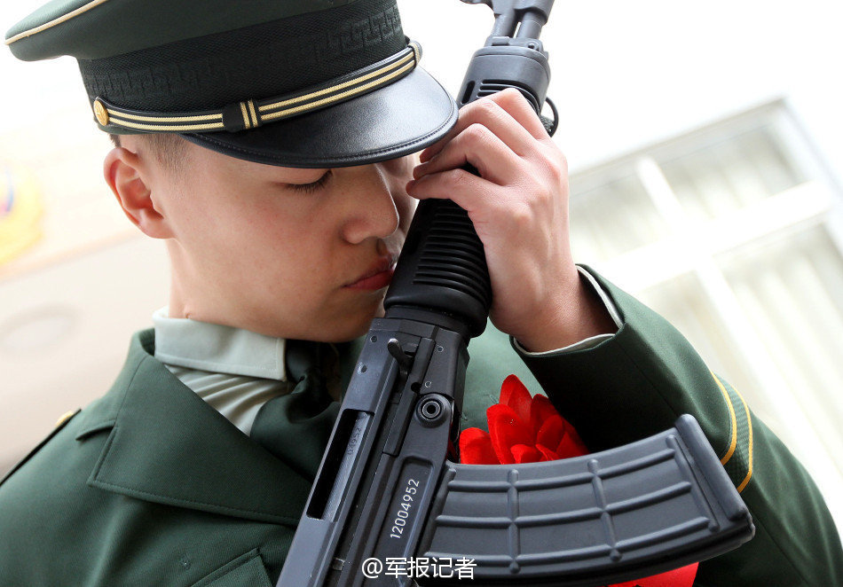 Soldiers are grieved to bid farewell to their military ranks and guns when are discharged from active duty. (Photo/Official Micro-blog of Junbao Jizhe)