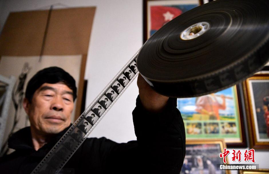 Wei Shaoxian checks films of his collection of red movies. (CNS/Hao Qunying)