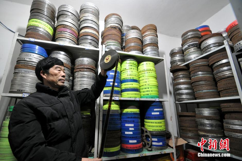 Wei Shaoxian checks films of his collection of red movies. (CNS/Hao Qunying)