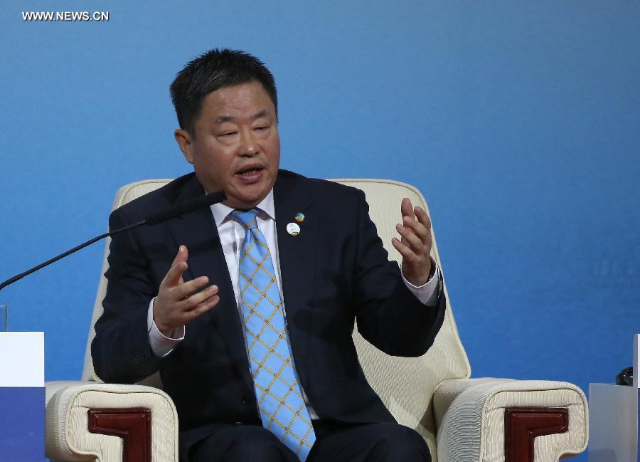 Frank Ning, Chairman of COFCO Corporation & APEC Business Advisory Council Chair 2014, speaks in a summit dialogue on Asia-Pacific economic integration and global multilateral trade system during the 2014 Asia-Pacific Economic Cooperation (APEC) CEO Summit in Beijing, capital of China, Nov. 9, 2014. The 2014 APEC CEO Summit opened in Beijing on Sunday. (Xinhua/Yin Gang)