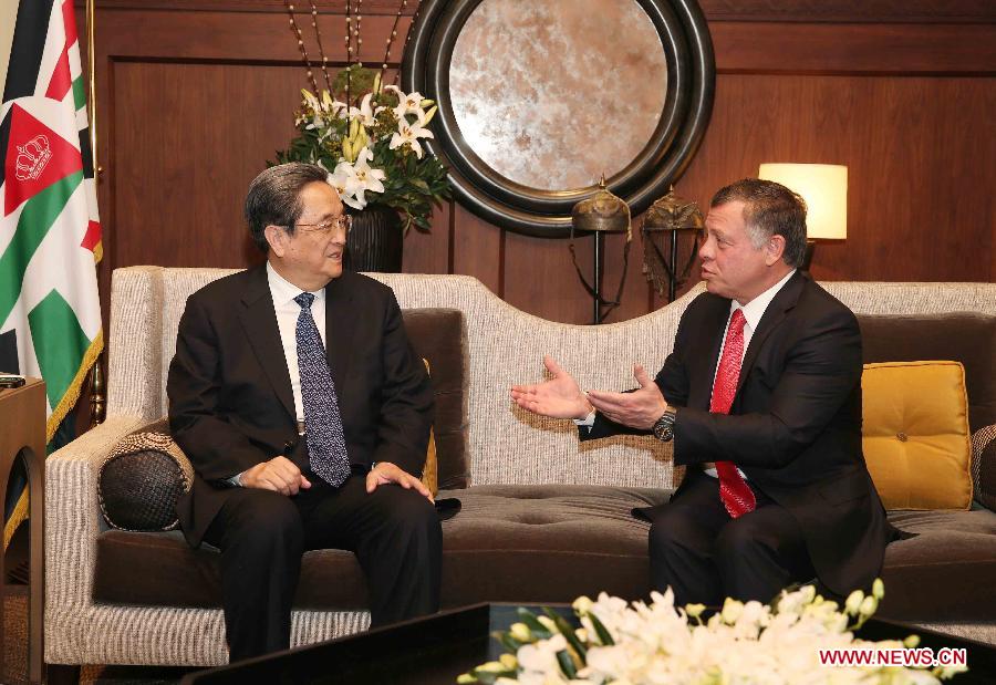 During his stay in Jordan, Yu met with King Abdullah II, Prime Minister Abdullah Ensour, Acting House Speaker Ahmad Safadi and Senate President Abdul Raouf Rawabdeh, and discussed with them bilateral ties and cooperation as well as regional affairs.