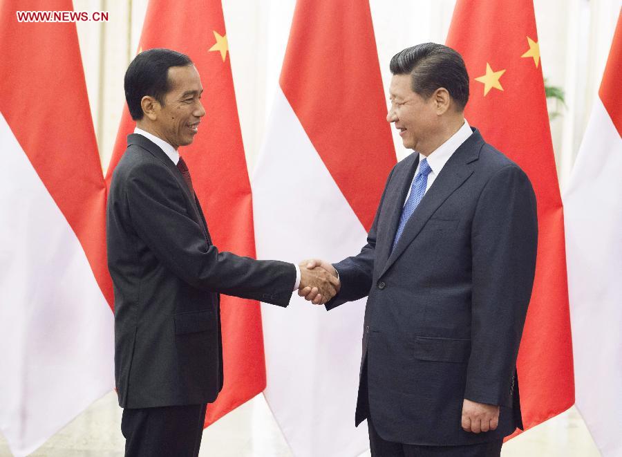 Chinese President Xi Jinping (R) meets with Indonesian President Joko Widodo at the Great Hall of the People in Beijing, capital of China, Nov. 9, 2014. (Xinhua/Xie Huanchi)