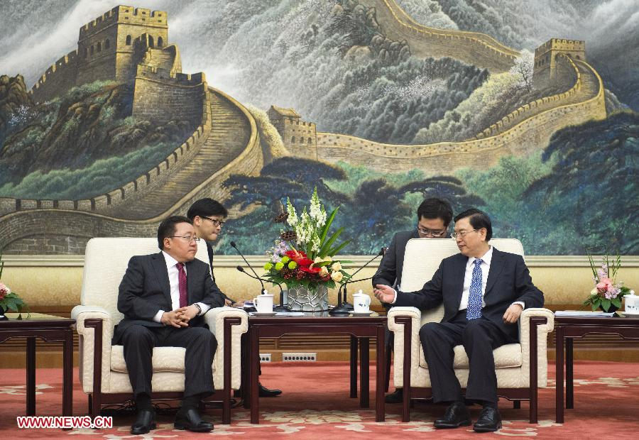 Zhang, chairman of the Standing Committee of the National People's Congress (NPC), said China and Mongolia should deepen political understanding and mutual trust, treat each other with sincerity and respect and strengthen the bilateral economic cooperation.