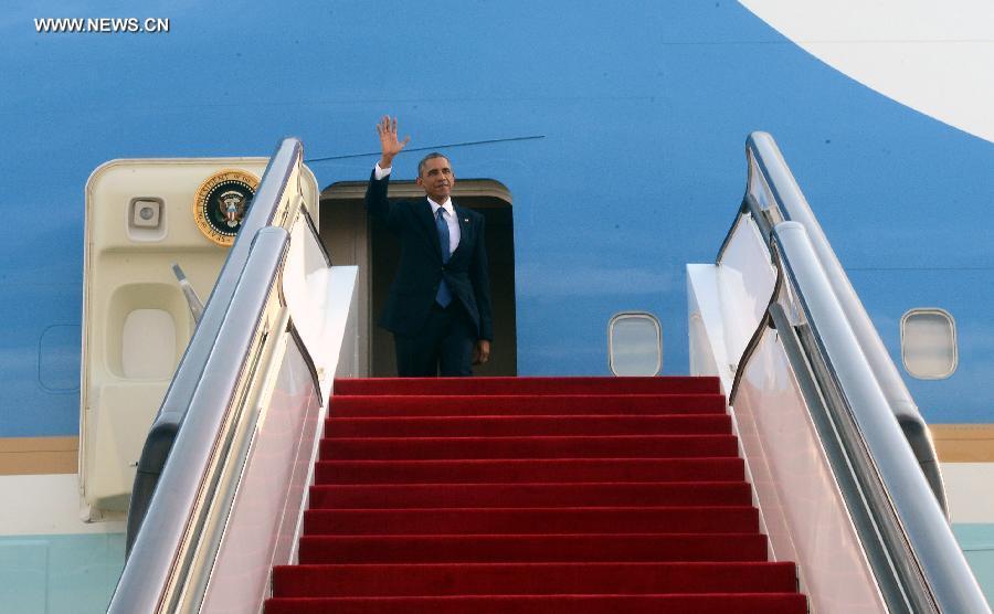 BEIJING, Nov. 10 -- U.S. President Barack Obama arrived in Beijing Monday to attend the 22nd Asia-Pacific Economic Cooperation (APEC) Economic Leaders' Meeting and pay a state visit to China at the invitation of Chinese President Xi Jinping.